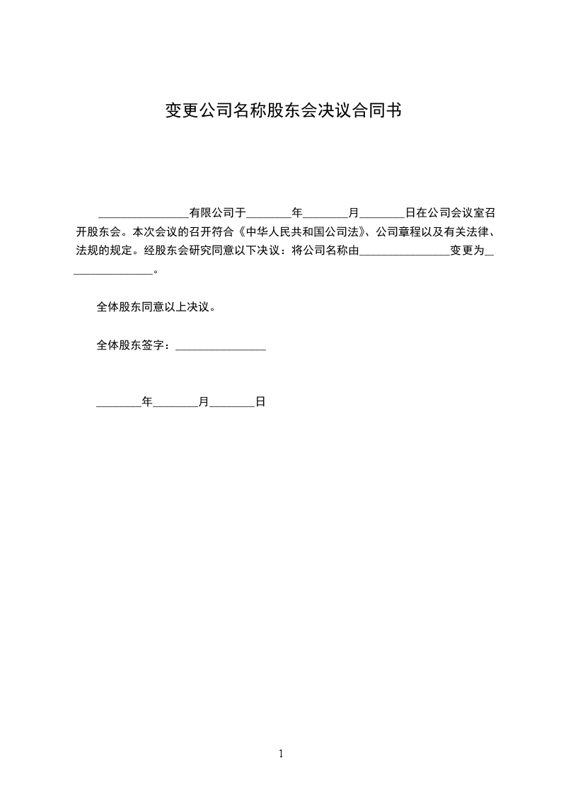 __有限公司于____________年______月___________日 在_____________________召开股东会会议,本次会议是根据公司章程规定召开的临时会议,于召开会议前依法通知了全体股东, 会议通知的时间、方式以及会议的召集和主持符合公司章程的规定,出席本次股东会会议的有股东______和股东____________有限公司(原名称为:____________有限公司),全体股东均已到会。