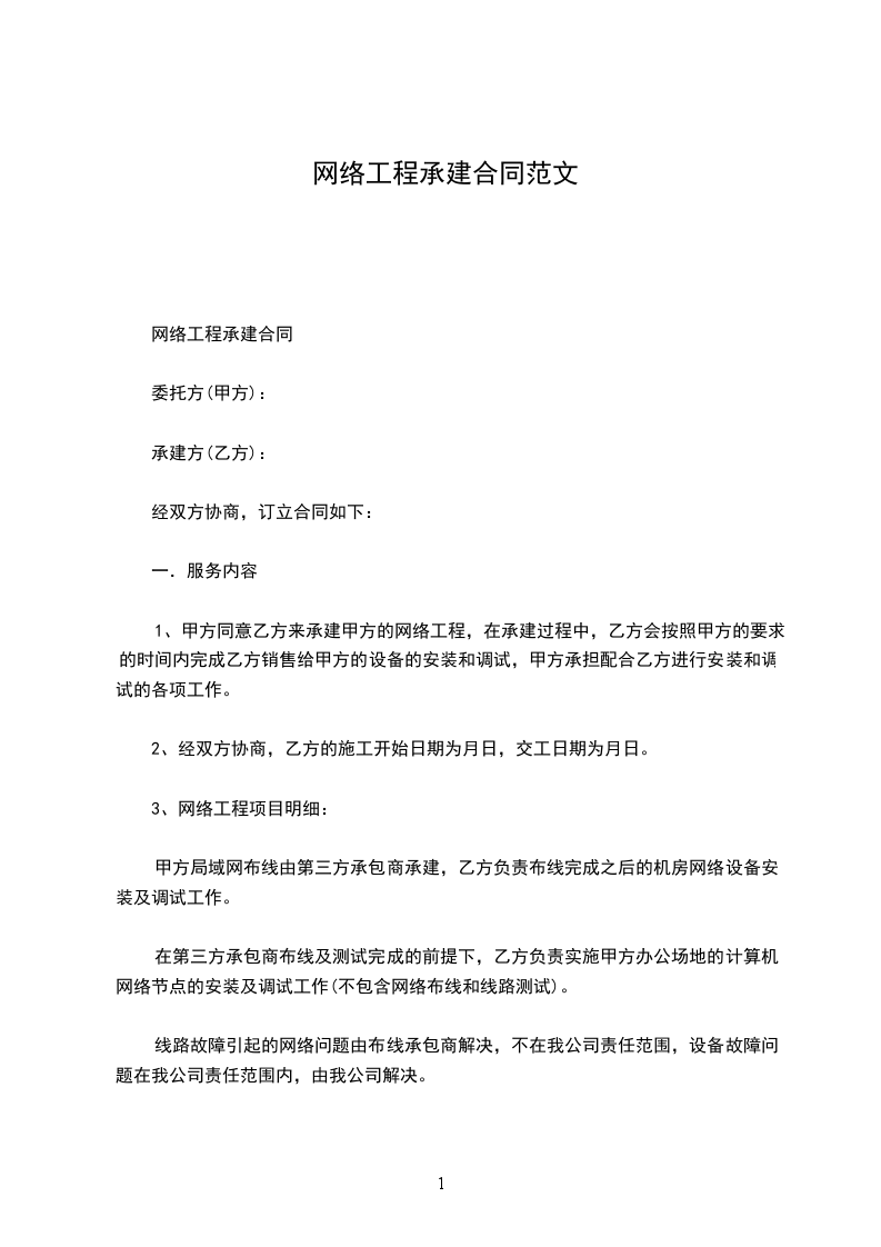 1、甲方同意乙方来承建甲方的网络工程,在承建过程中,乙方会按照甲方的要求的时间内完成乙方销售给甲方的设备的安装和调试,甲方承担配合乙方进行安装和调试的各项工作。