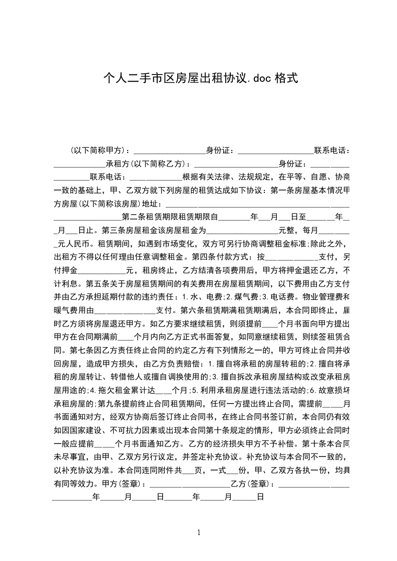 第十条:本合同页数,一式2份,甲、乙双方各执一份,均具有同等效力。