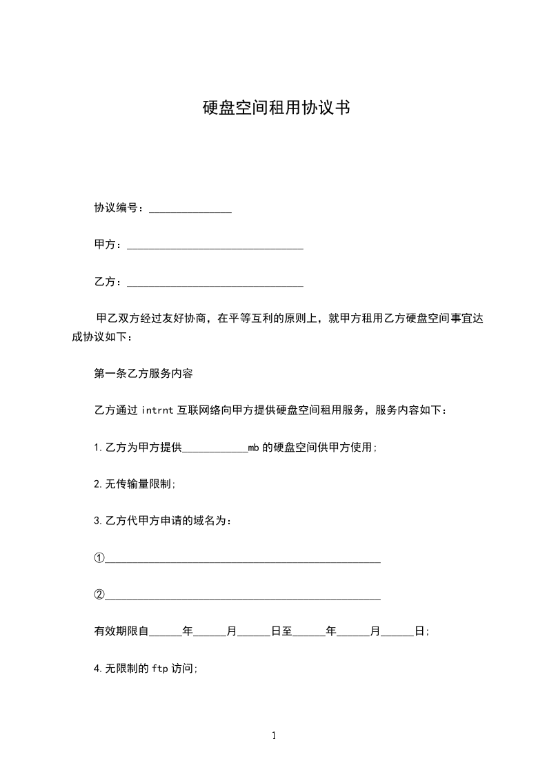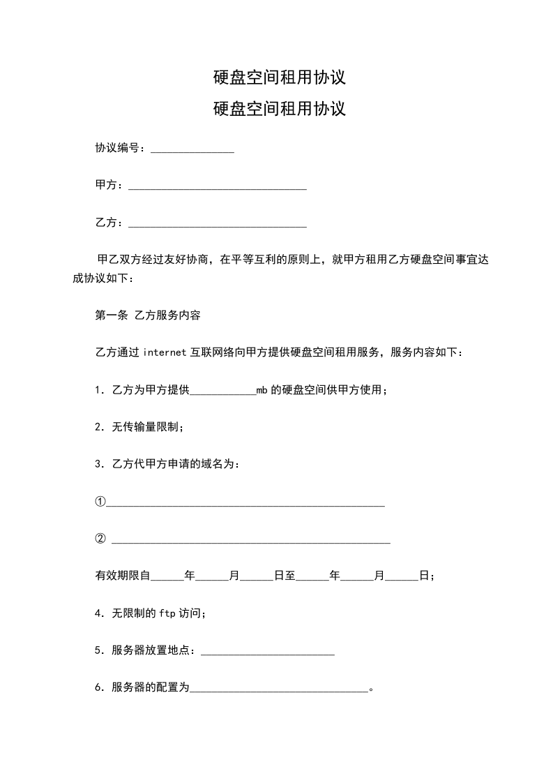 甲乙双方经过友好协商,在平等互利的原则上,就甲方租用乙方硬盘空间事宜达成协议如下: