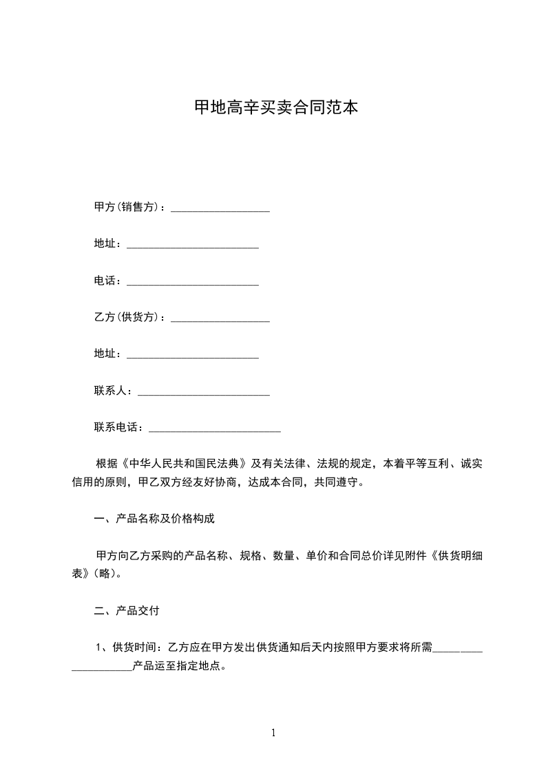 甲地高辛购销合同