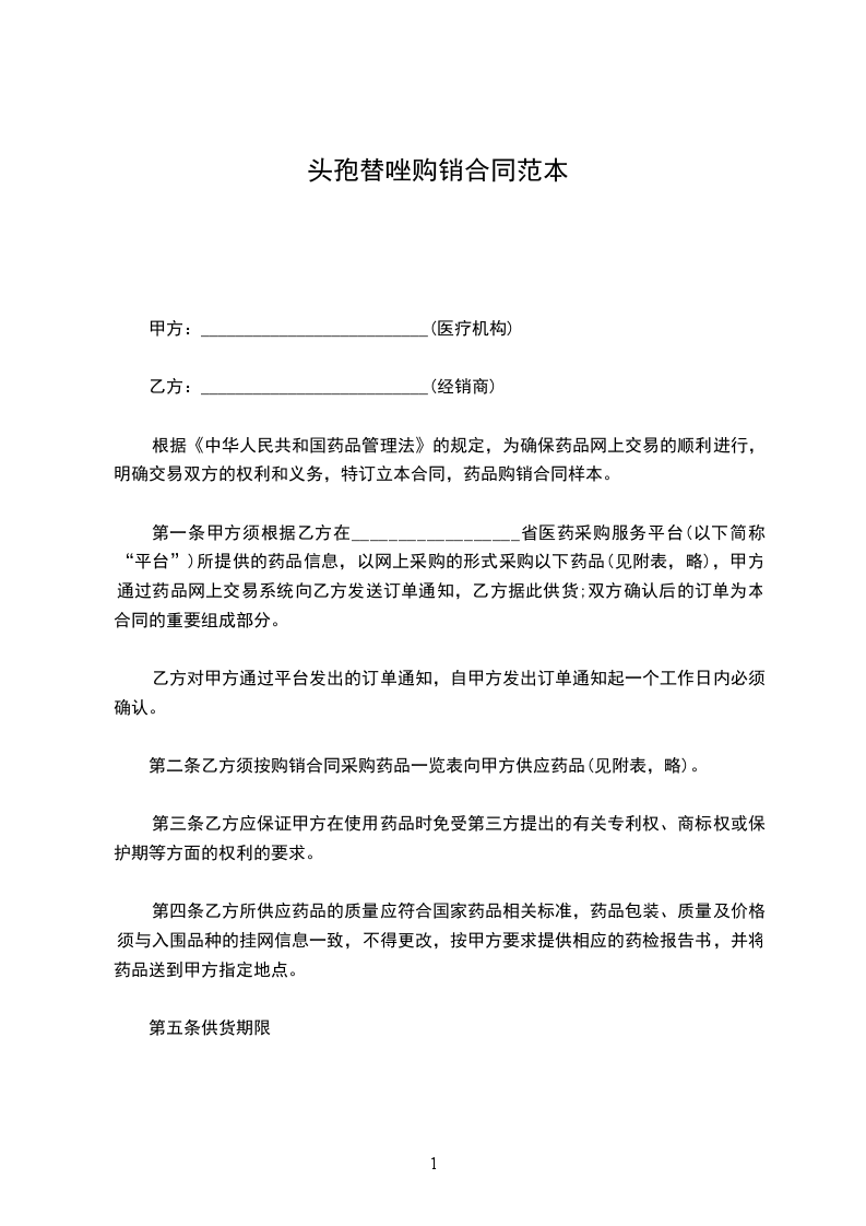 根据《_________________》,甲、乙双方经协商确定,甲方向乙方购买药品。为明确双方责任和权利,特签订本合同,共同遵守。具体条款如下: