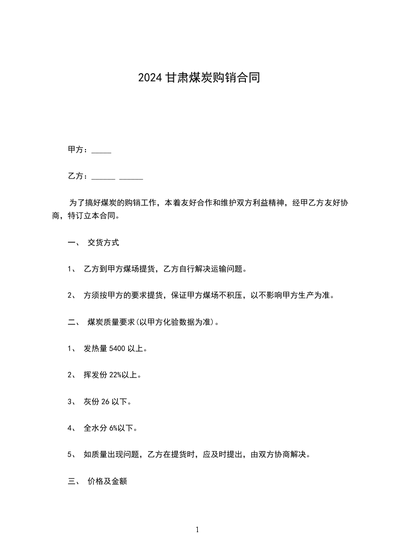 1、 乙方到甲方煤场提货,乙方自行解决运输问题。