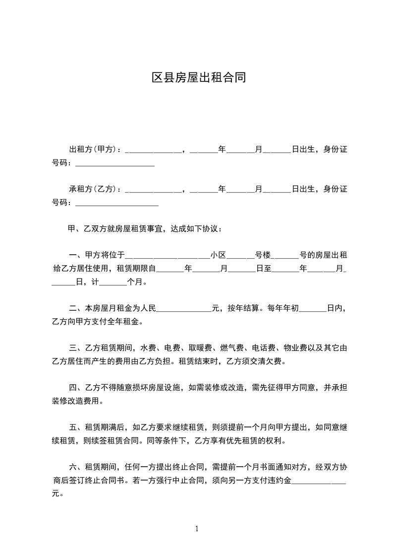 出租方(甲方):_____________,男/女,身份证号码___________________________