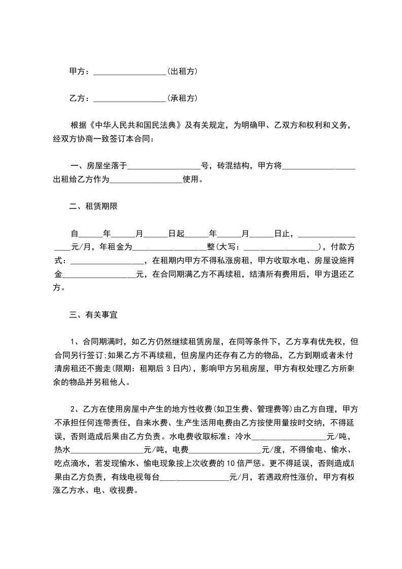 双方经友好协商,根据《民法典》及国家、当地政府对房屋租赁的有关规定,就租赁房屋一事达成以下协议: