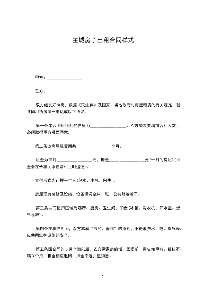 水电数字由甲乙双方与其他承租方平均分配(入住时的水电数字:电_____,水_____,)。