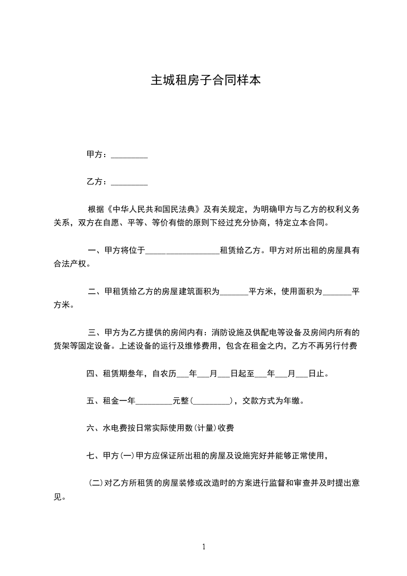 承租方(以下简称乙方):___________身份证号码:__________________