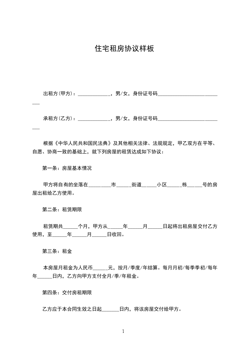 承租方(乙方):_____________,男/女,身份证号码___________________________