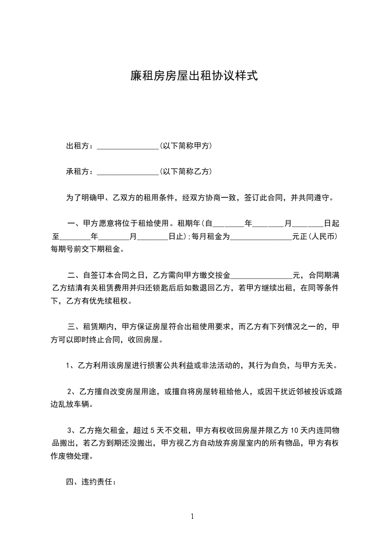 一、现甲方将座落于________________________________,面积________________________,租给乙方,甲方应保证该房产真实合法有效并本人有权利出租该房屋。现已未抵押。