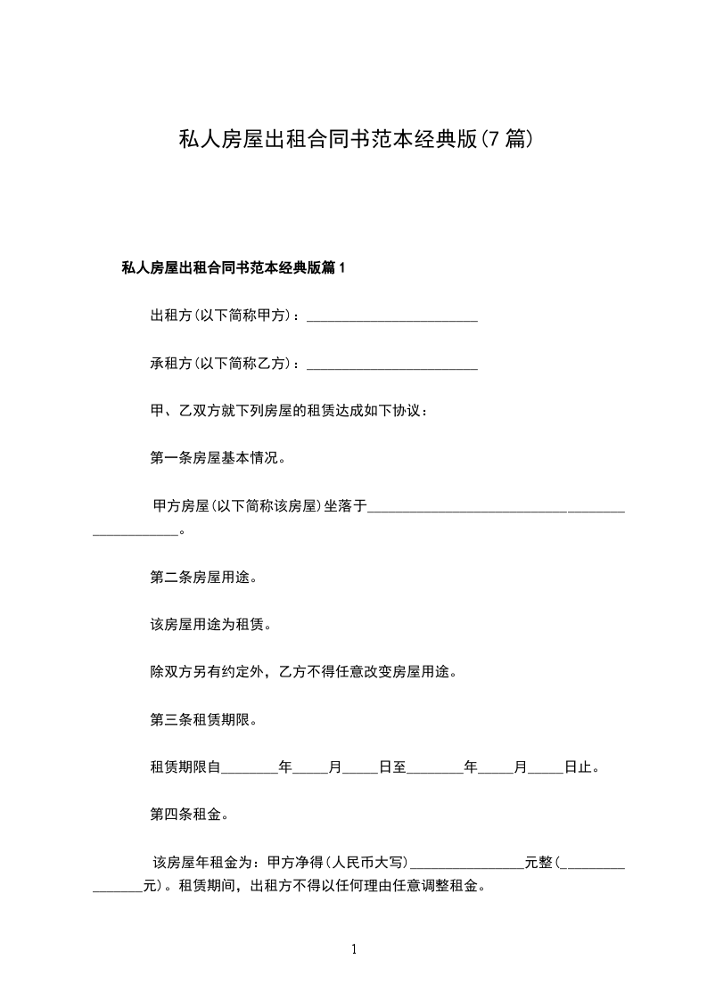 私人房屋出租合同书范本经典版篇7