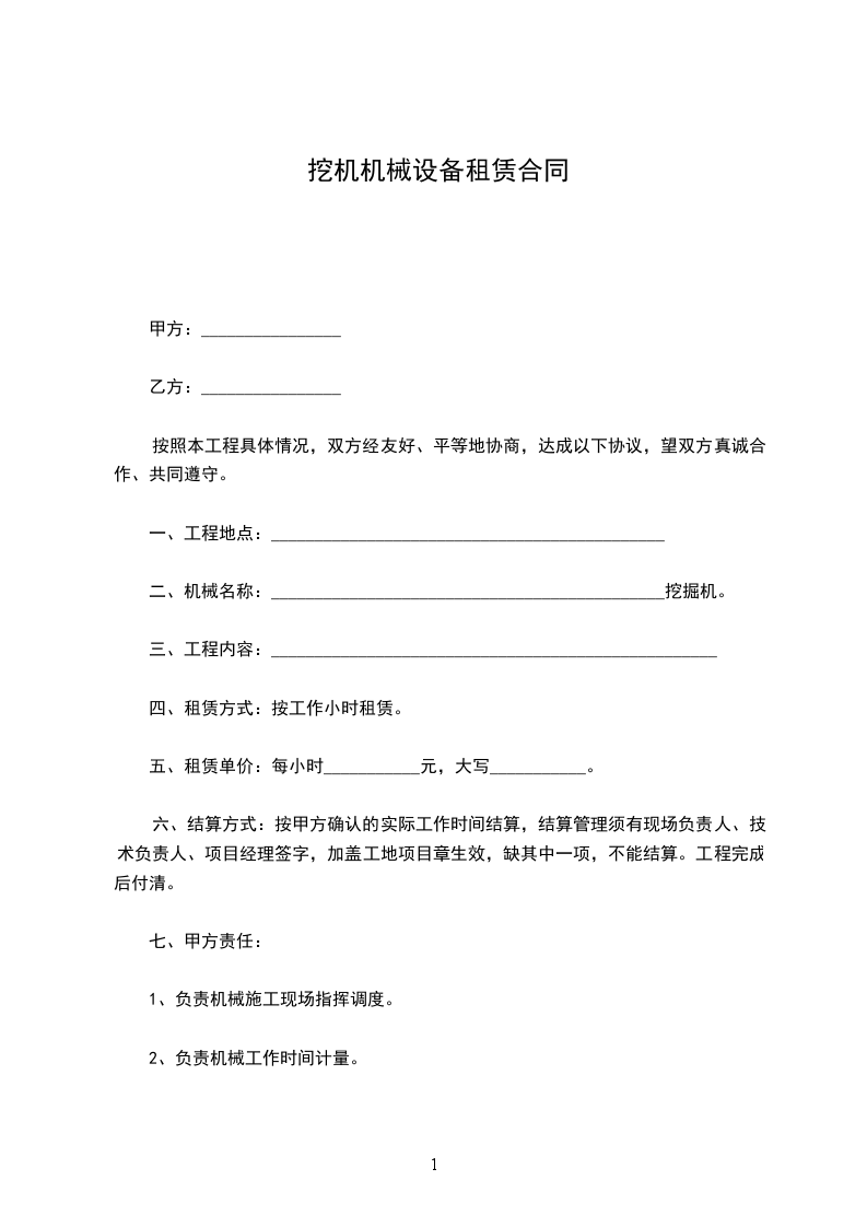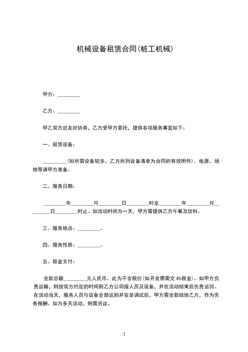 依据《民法典》及有关法律法规,为明确出租方与承租方的权利和义务,遵循平等、自愿、公平和诚信的原则,双方就_________机械租赁事宜协商一致,订立本合同。