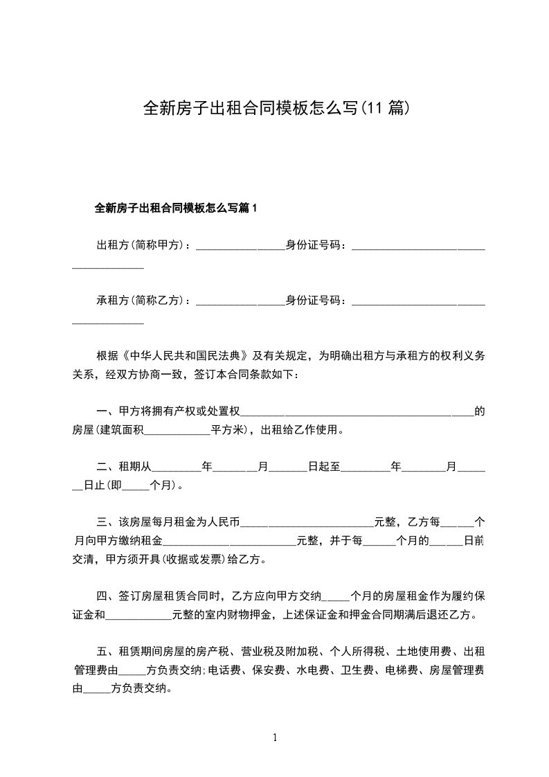 全新房子出租合同模板怎么写篇11