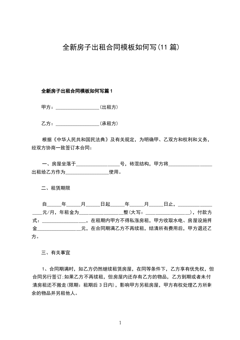一、房屋坐落于__________________号,砖混结构,甲方将__________________出租给乙方作为__________________使用。