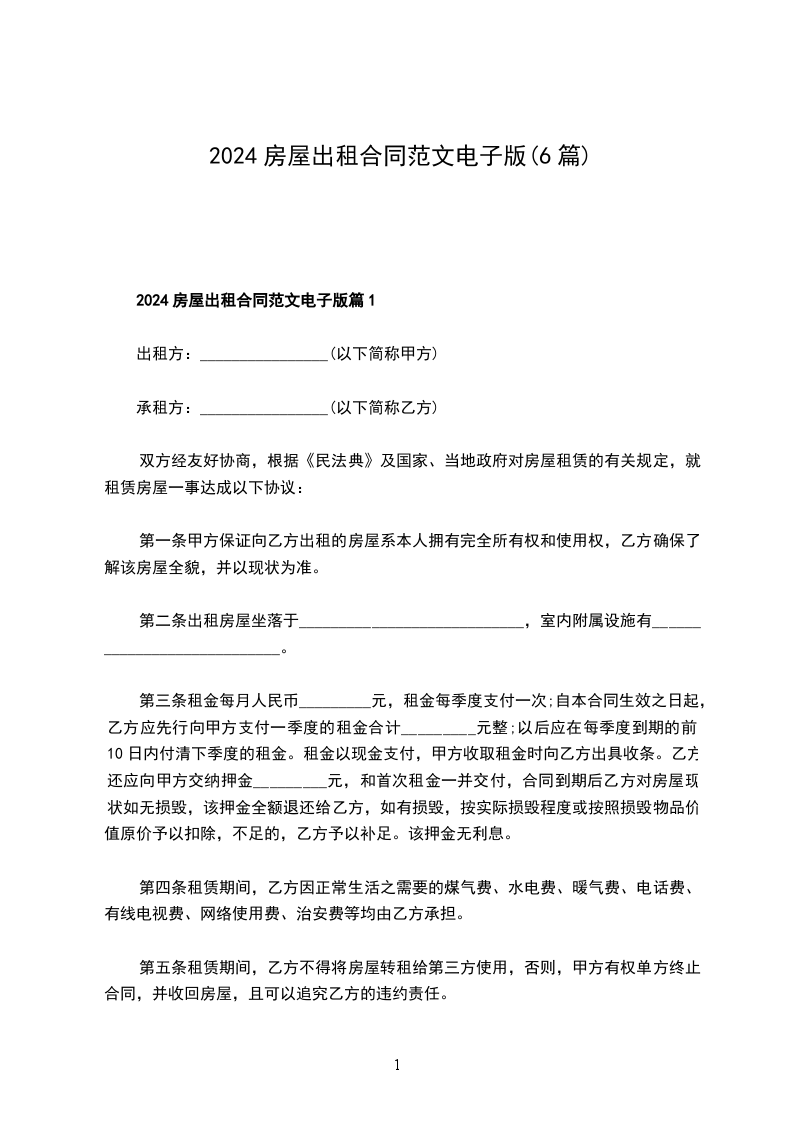1、该房屋租金为_____元/年(大写__________),水电、物业等各项费用另计。