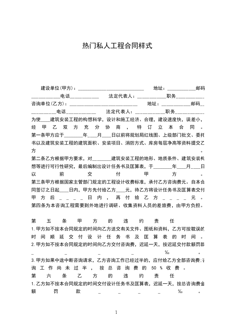 1.乙方如不按本合同规定的时间交付设计任务书及匡算表,迟延一天,按总咨询费金额罚款____‰。