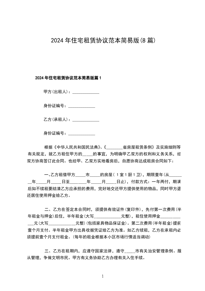 一、甲方将位于____市____街道____小区__号楼________号的房屋出租给乙方居住使用,租赁期限自____年____月____日至____年____月____日,计__个月。