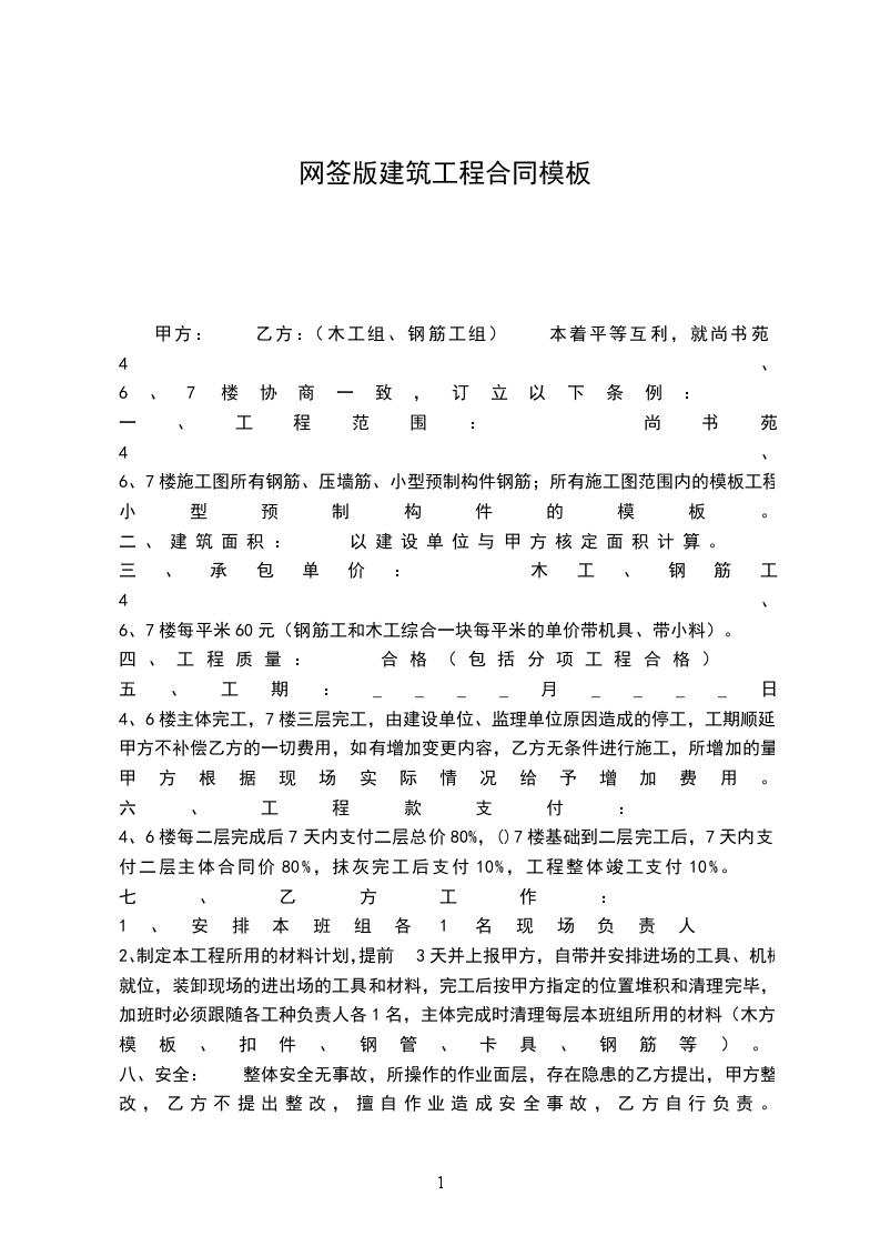 七、注意安全 文明施工,如果乙方施工人员出现工伤,因施工造成他人损伤等事故,一切由乙方负责,甲方不负担任何责任和费用。文明施工,讲究职业道德,讲究清洁卫生。