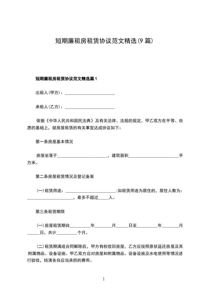第一条本合同所指标的为______________区_____________号楼_____________室,其中东南向卧室为出租。