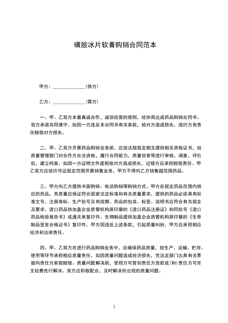 根据《中华人民共和国民法典》,甲、乙双方经协商确定,甲方向乙方购买药品。为明确双方责任和权利,特签订本合同,共同遵守。具体条款如下: