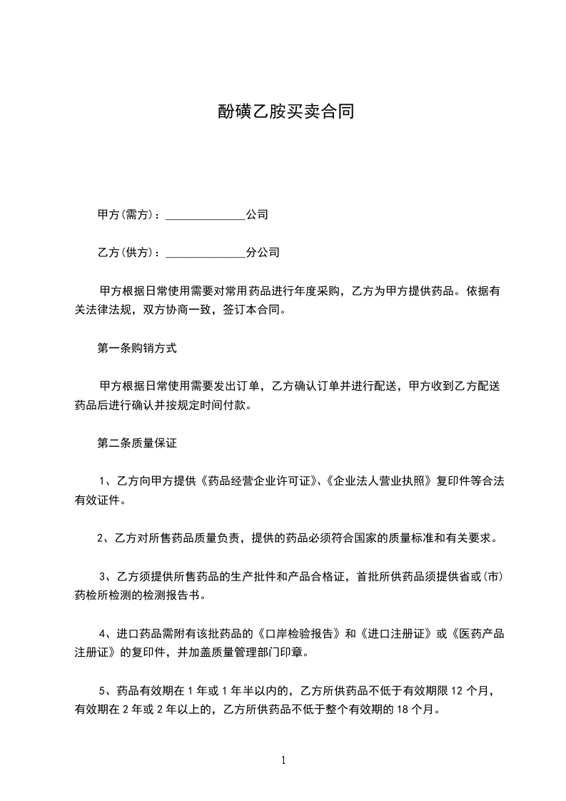 甲方根据日常使用需要对常用药品进行年度采购,乙方为甲方提供药品。依据有关法律法规,双方协商一致,签订本合同。