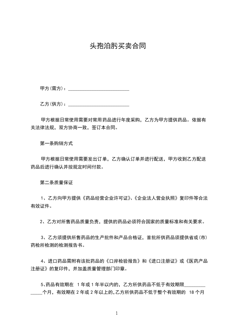 3、乙方须提供所售药品的生产批件和产品合格证,首批所供药品须提供省或(市)药检所检测的检测报告书。