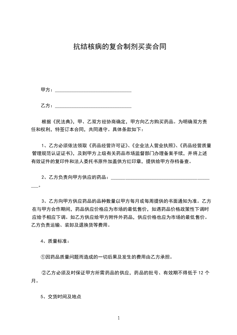 抗结核病的复合制剂买卖合同