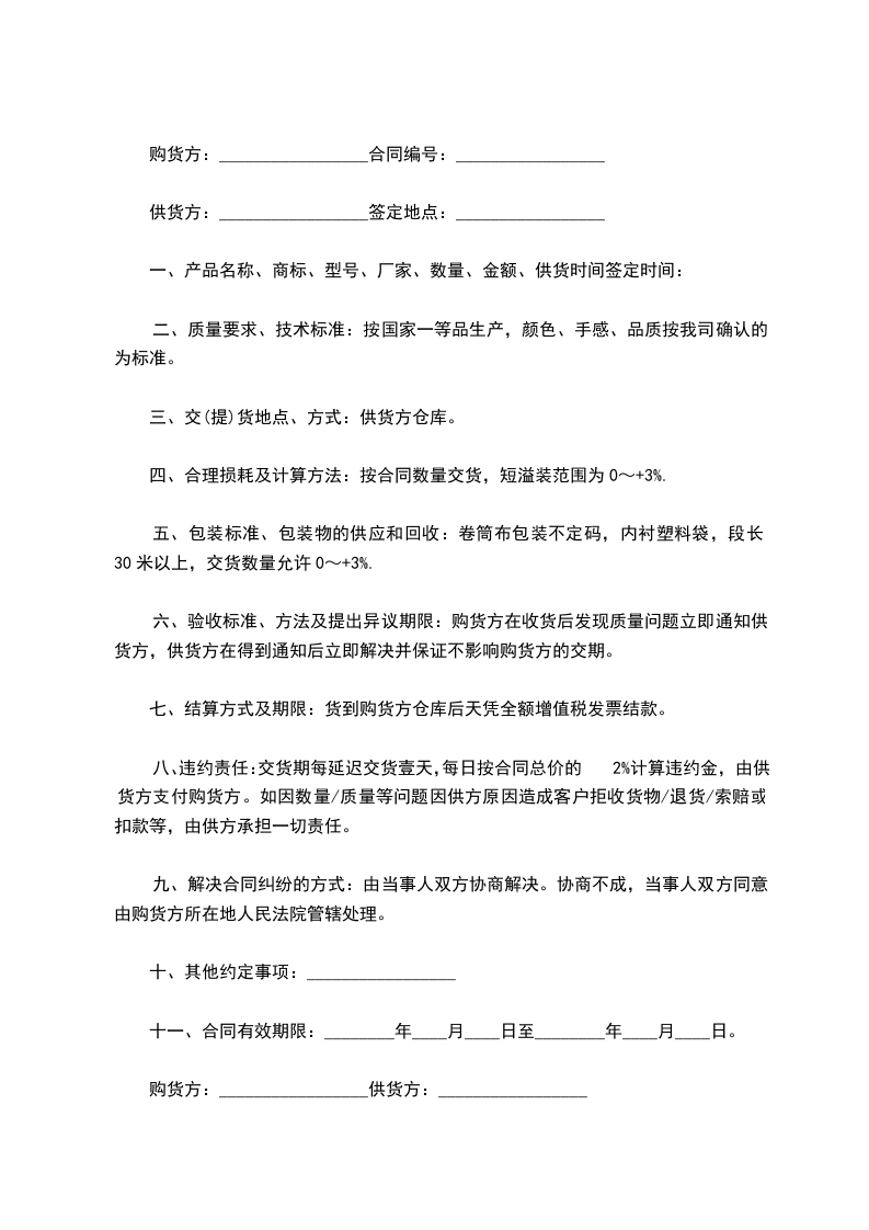2、按此合同交货日期,按时交货。如未按时交货,甲方将扣除乙方千分之二每日的货款作为违约金。