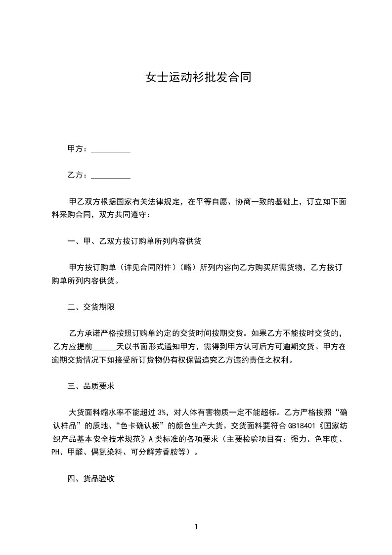 女士运动衫买卖合同