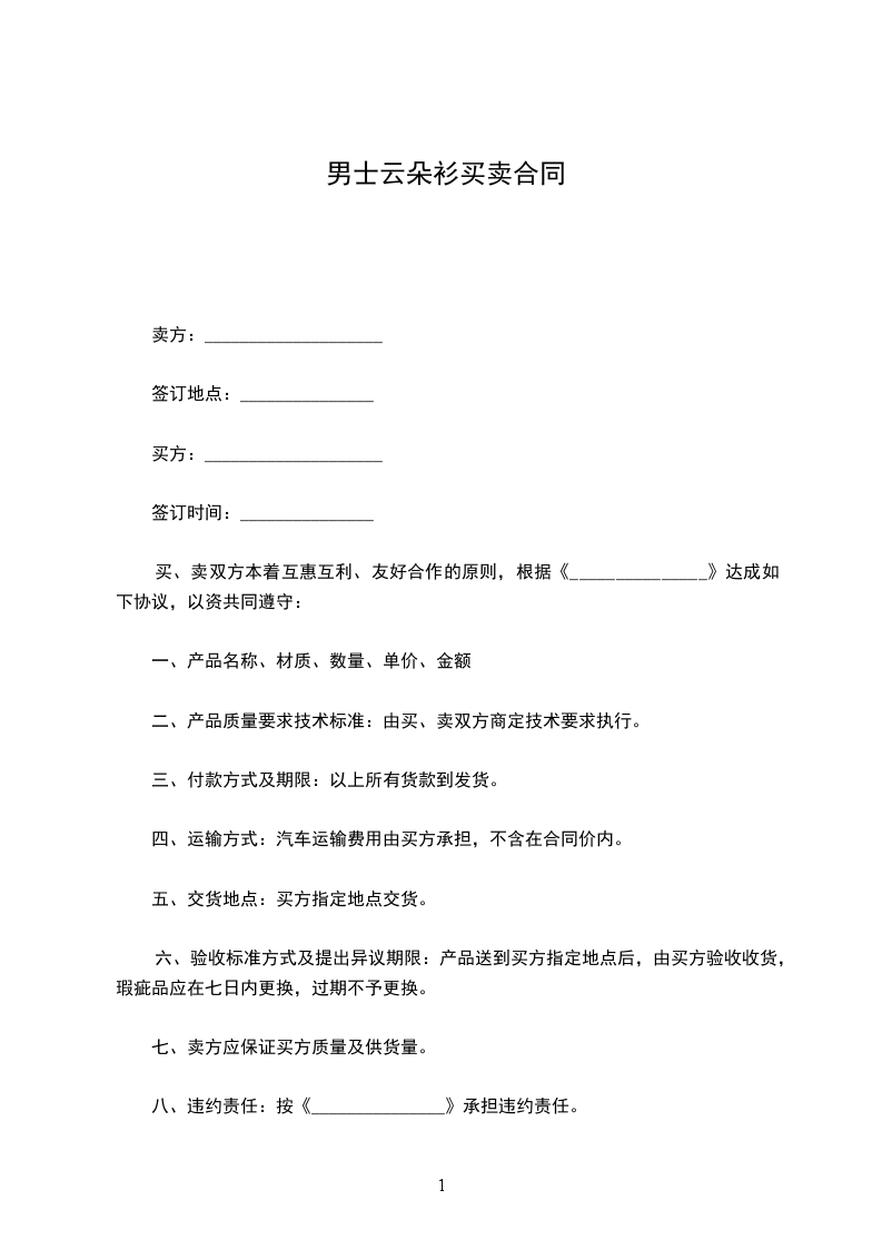 男士云朵衫买卖合同