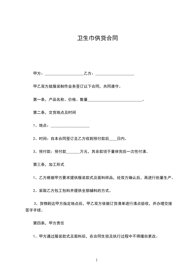 第一条,产品名称、价格、数量____________________________。
