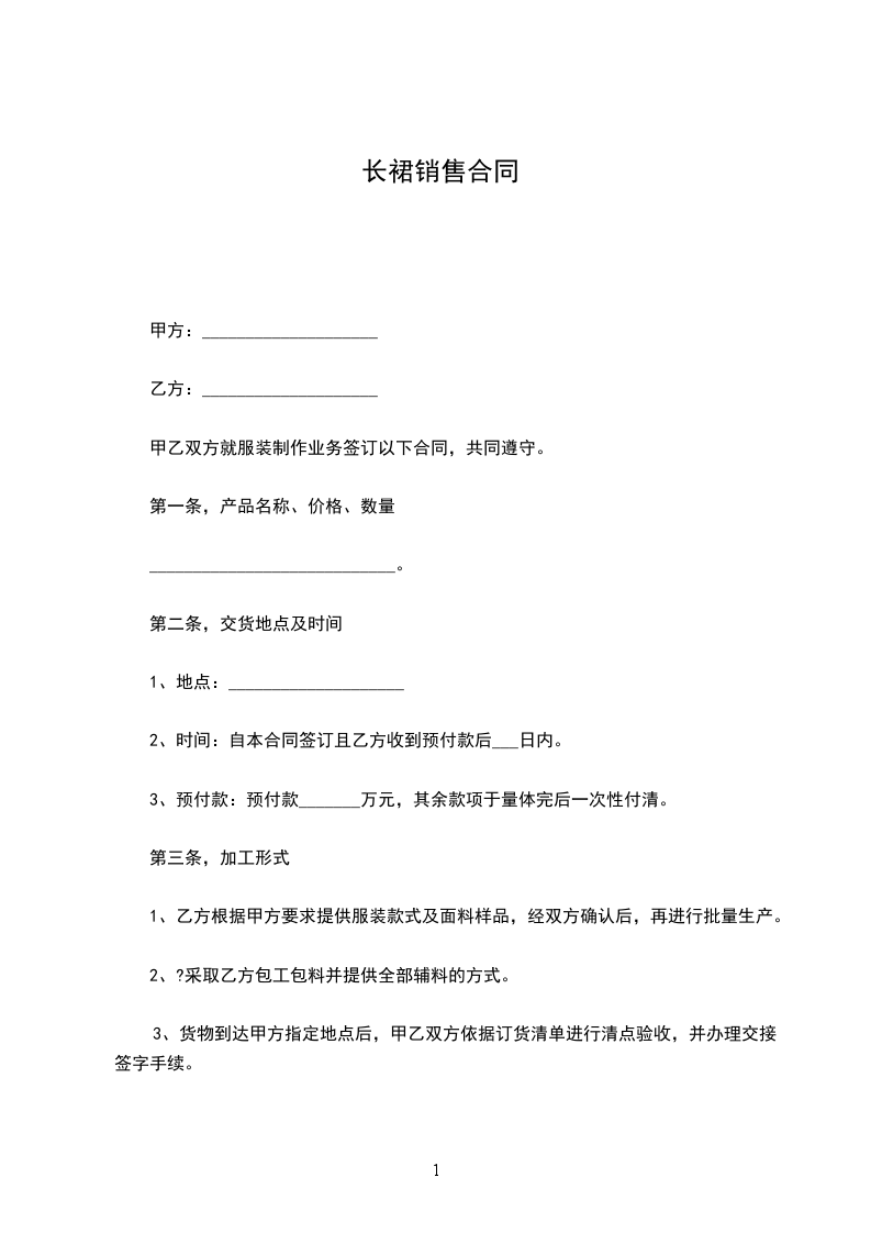 1、甲方通过服装款式及面料后,在合同生效及执行过程中不得擅自更改。