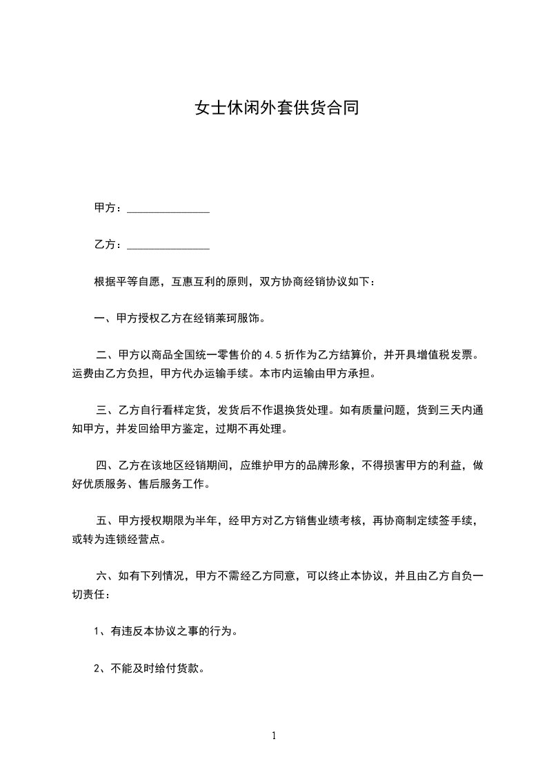 休闲外套购销合同
