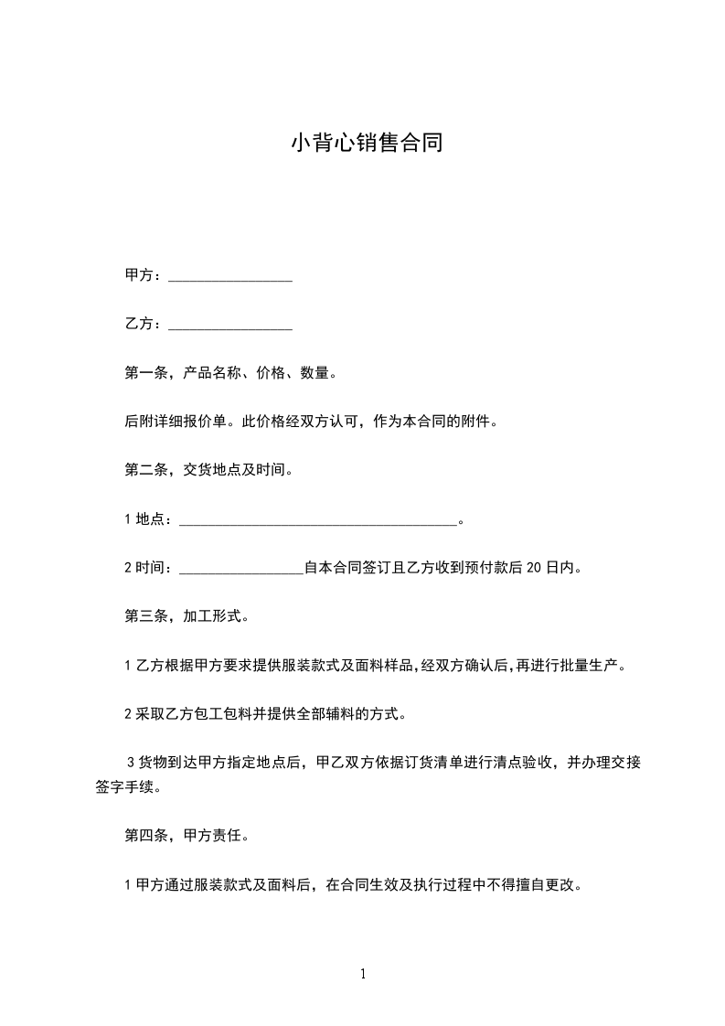 1乙方根据甲方要求提供服装款式及面料样品,经双方确认后,再进行批量生产。