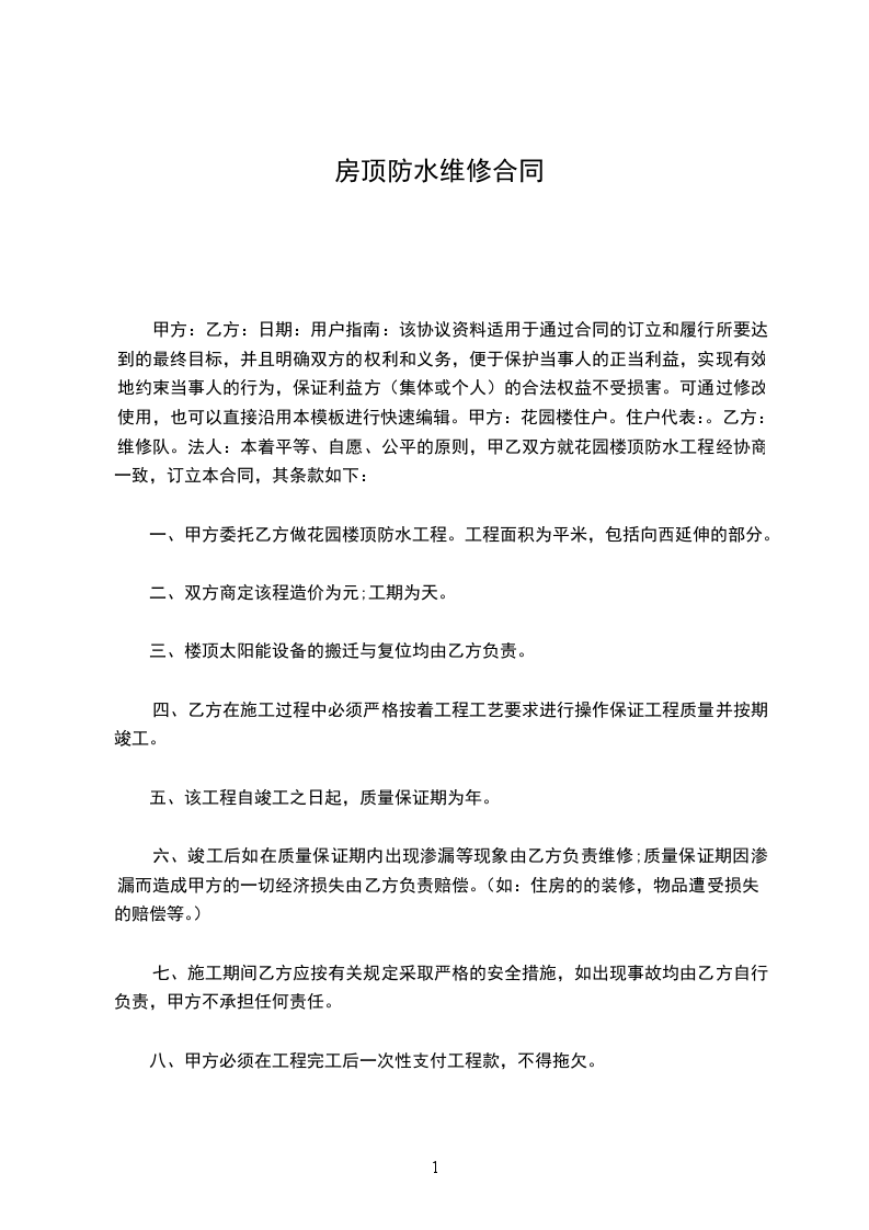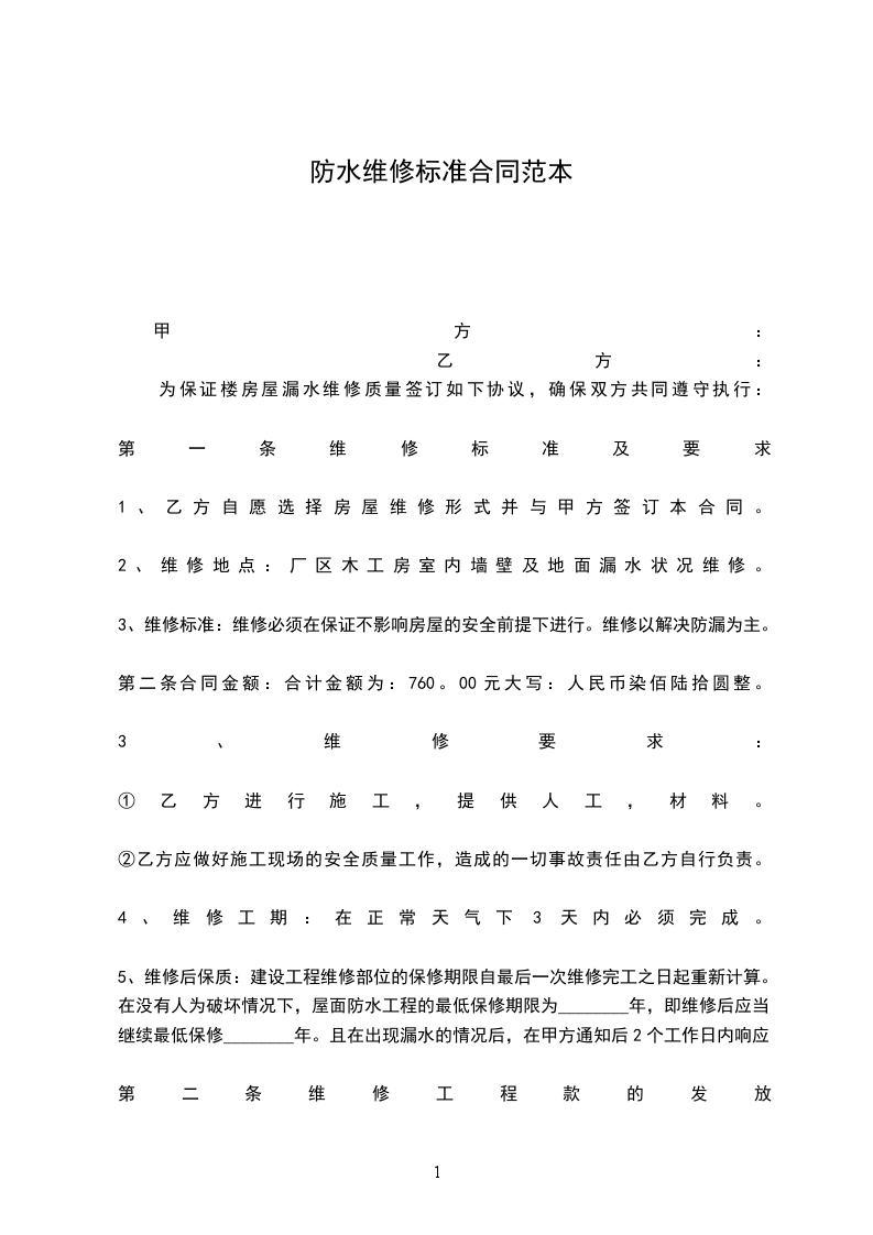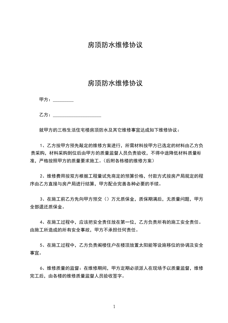 为保证楼房屋漏水维修质量签订如下协议,确保双方共同遵守执行: