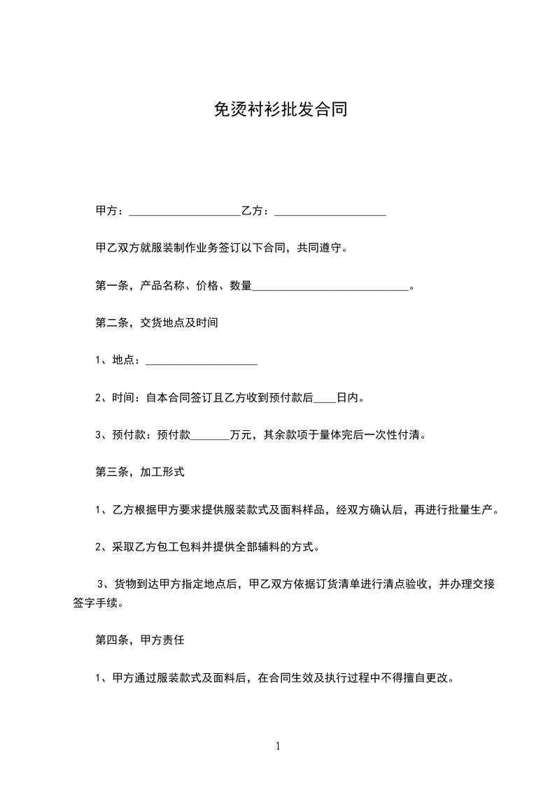 男装衬衫批发合同