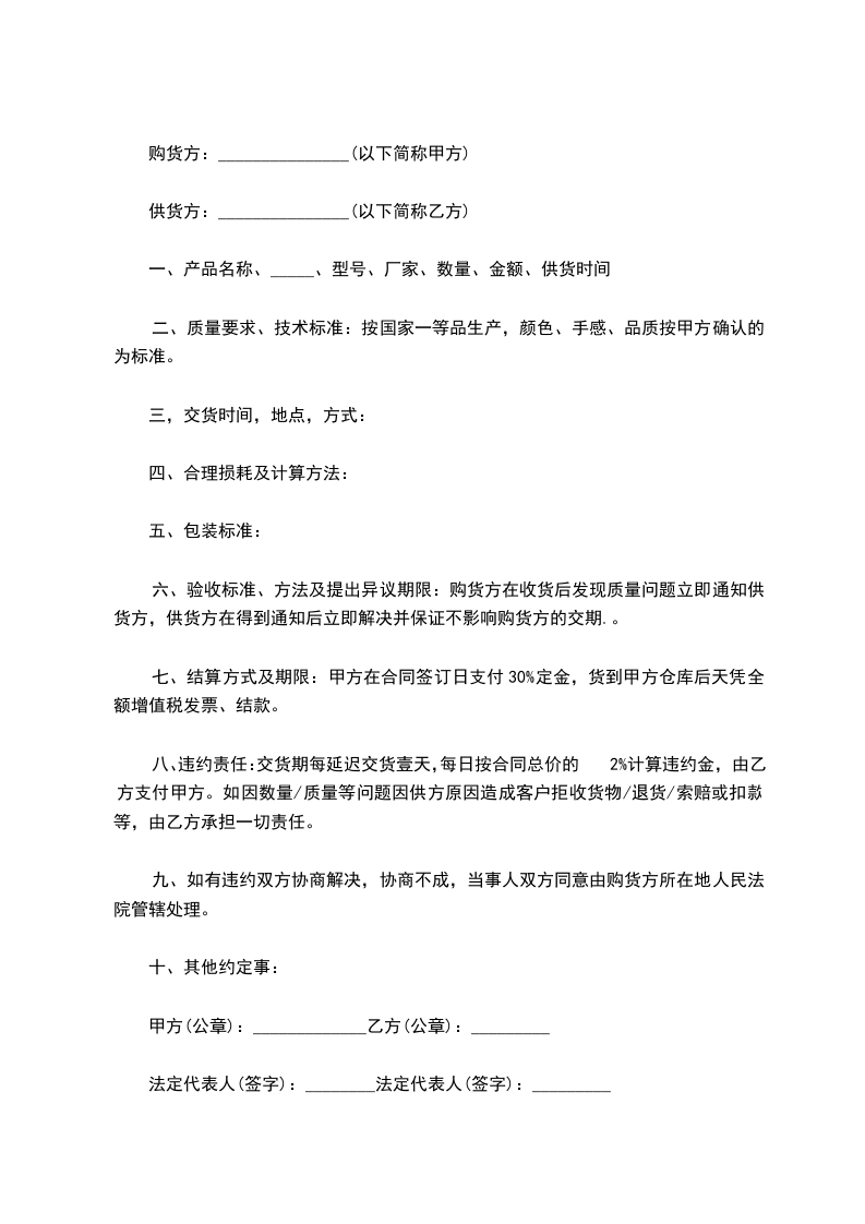 九、如有违约双方协商解决,协商不成,当事人双方同意由购货方所在地人民法院管辖处理。