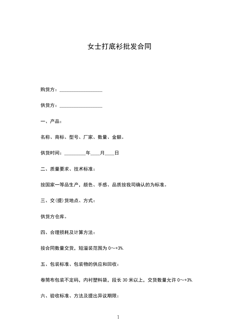 1甲方通过服装款式及面料后,在合同生效及执行过程中不得擅自更改。