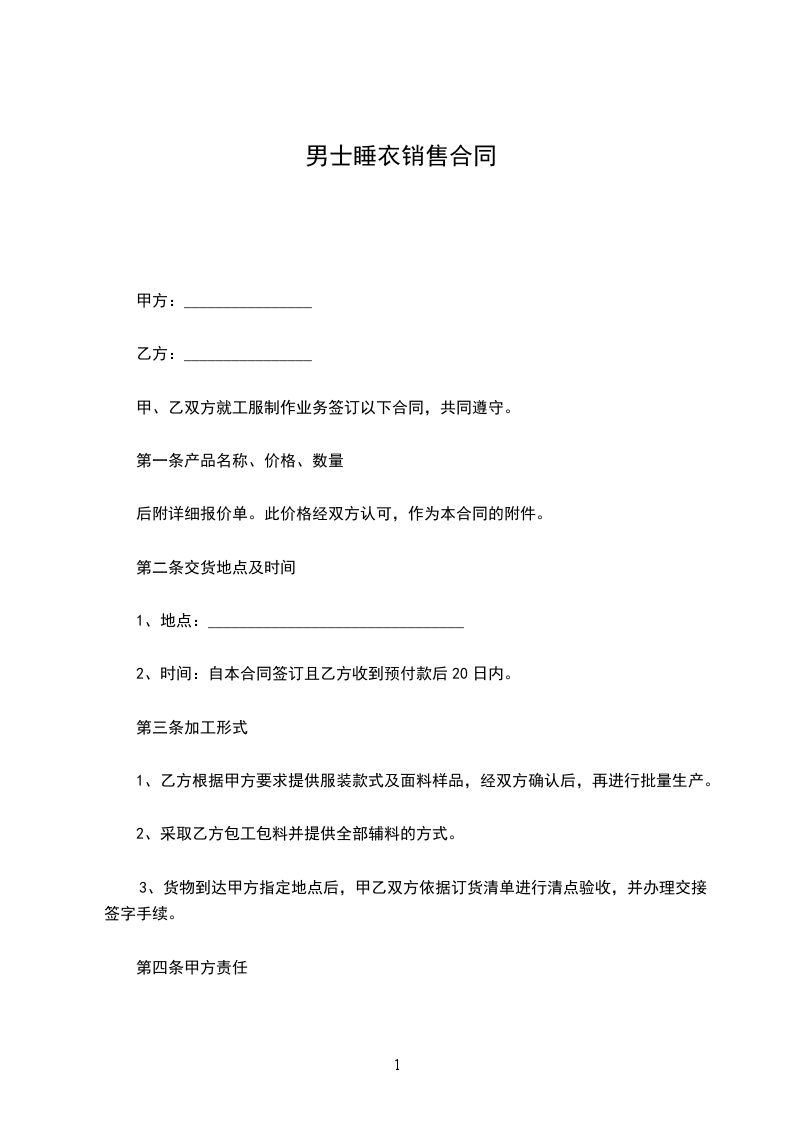 1甲方通过服装款式及面料后,在合同生效及执行过程中不得擅自更改。