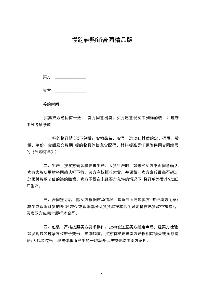 四、包装:严格按照买方要求操作。货物发送至买方指定点后,经买方检验,如发现包装过紧导致鞋子变形,影响销售,买方有权要求卖方赔偿相应损失或全额退赔;因包装过松、浪费体积所产生的一切额外运费损失均由卖方承担。