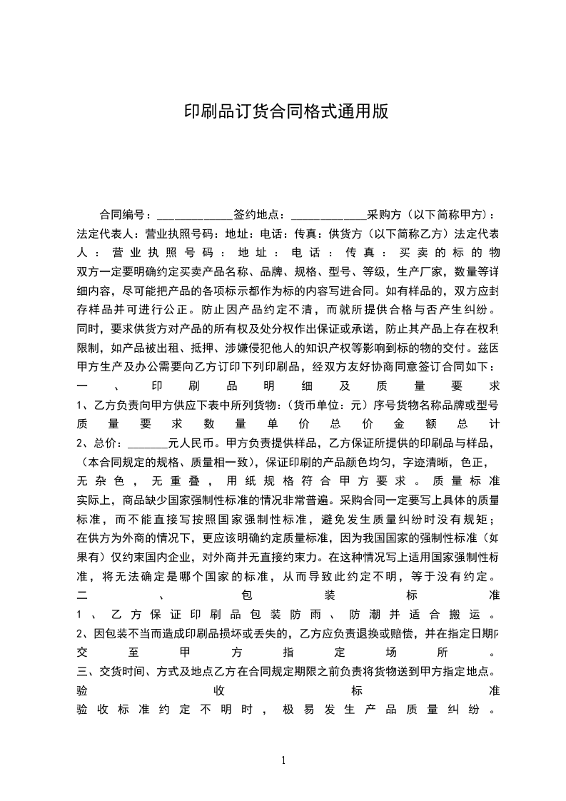 2、总价:_______元人民币。甲方负责提供样品,乙方保证所提供的印刷品与样品,(本合同规定的规格、质量相一致),保证印刷的产品颜色均匀,字迹清晰,色正,无杂色,无重叠,用纸规格符合甲方要求。质量标准