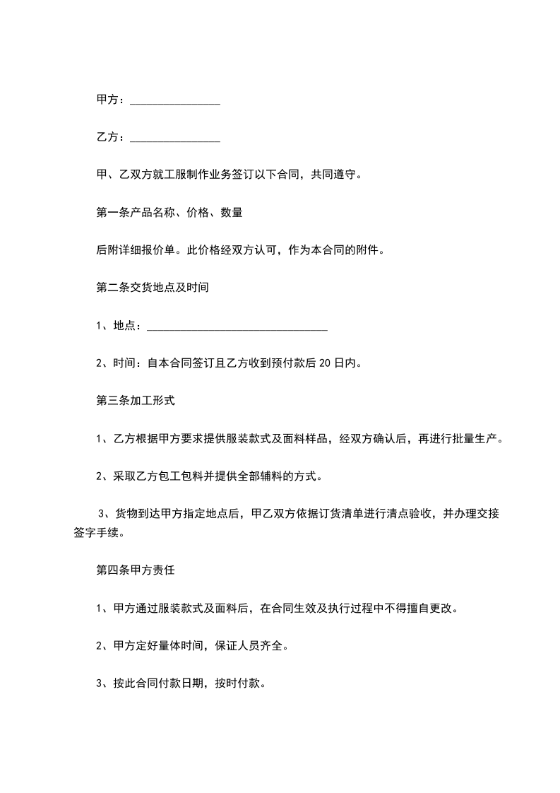 八、违约责任:交货期每延迟交货壹天,每日按合同总价的___%计算违约金,由供货方支付购货方。如因数量质量等问题因供方原因造成客户拒收货物退货索赔或扣款等,由供方承担一切责任。