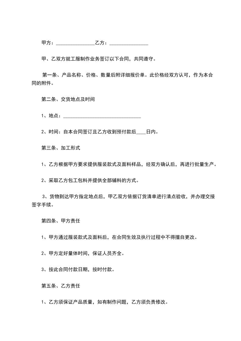 六、交货方式乙方按照甲方的交货资料要求,把大货面料送交至甲方指定的交货地点(甲方以传真、电子邮件、电报、信函等书面文件指定交货地点)。乙方交货时应在交货清单上注明单号和货物的款号、色号、布种、克重、颜色、缸号以及数量。