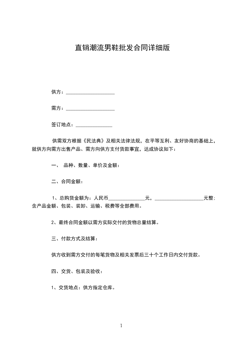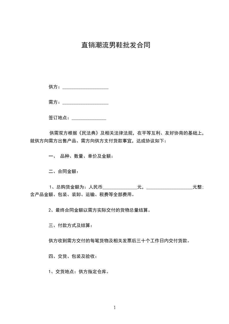 2.交货地点:乙方应将商品送到甲方的营业场所或甲方指定的其他地点。
