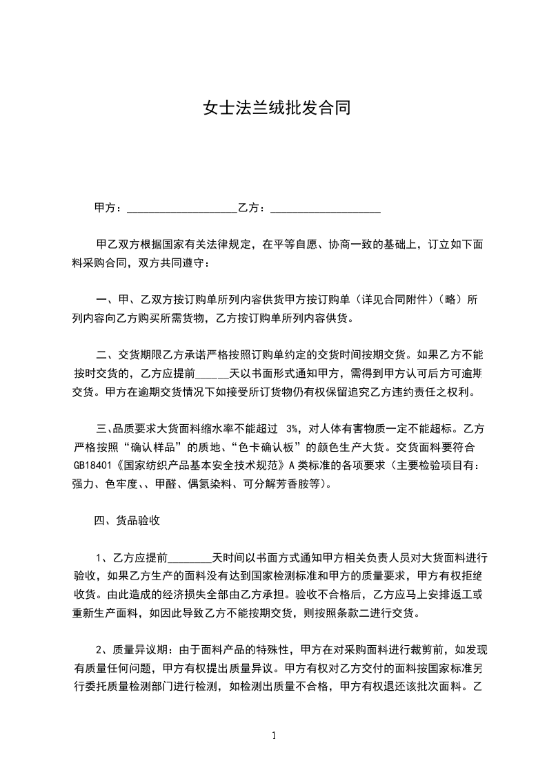 (1)产品品种、规格、质量不符合约定,甲方同意收货的,按质论价;甲方不同意收货的,由乙方负责处理,并承担因此造成的损失。