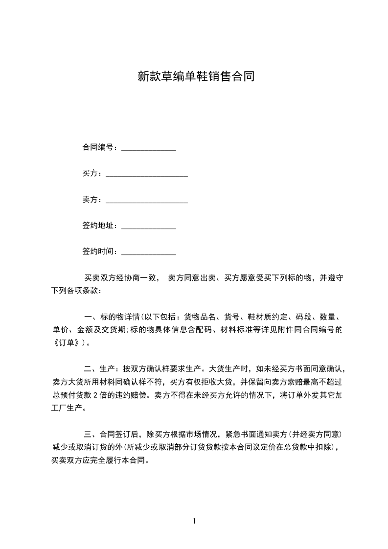 一、标的物详情(以下包括:货物品名、货号、鞋材质约定、码段、数量、单价、金额及交货期;标的物具体信息含配码、材料标准等详见附件同合同编号的《订单》)。