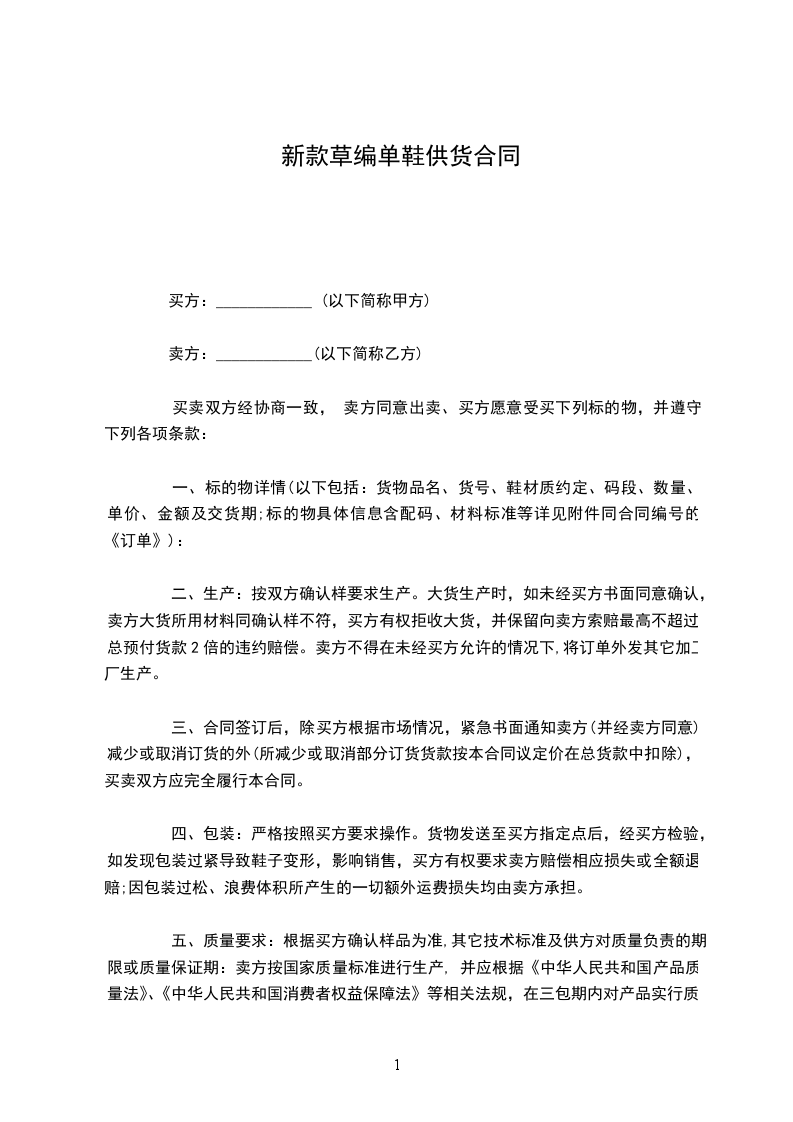五、质量要求:根据买方确认样品为准,其它技术标准及供方对质量负责的期限或质量保证期:卖方按国家质量标准进行生产, 并应根据《中华人民共和国产品质量法》、《中华人民共和国消费者权益保障法》等相关法规,在三包期内对产品实行质量“三包”;交货后半年内,出现消费者大面积(15%以上,含15%)投诉本次大货较重大质量问题,经相关质量检验部门证实产品本身确实有较大质量问题,卖方有义务配合买方进行必要的产品召回责任,并承担由此产生的一切费用。