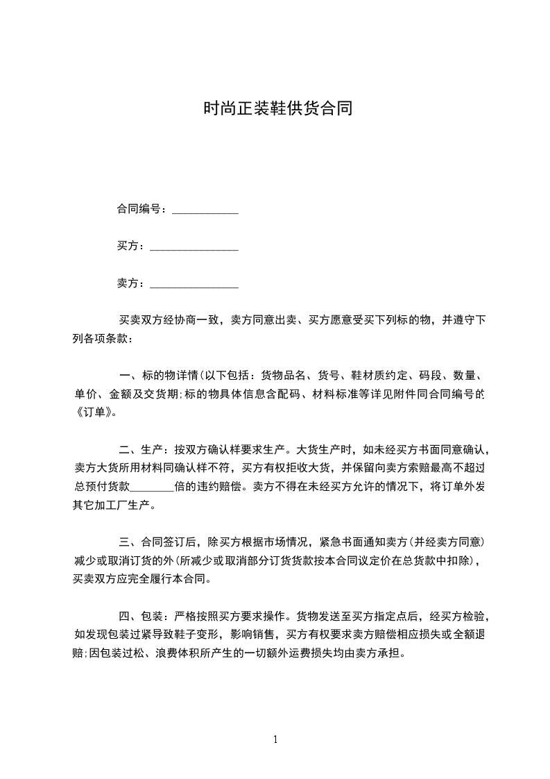 八、验收标准:买方按确认样及相关标准和要求验收所有货物。相关标准以国际鞋类贸易正常检验标准为准,如客户对某个批次(或全部批次)大货有另行质量要求或其他要求,买方需在该批次(或指定批次)交货期前________年,期满另续;