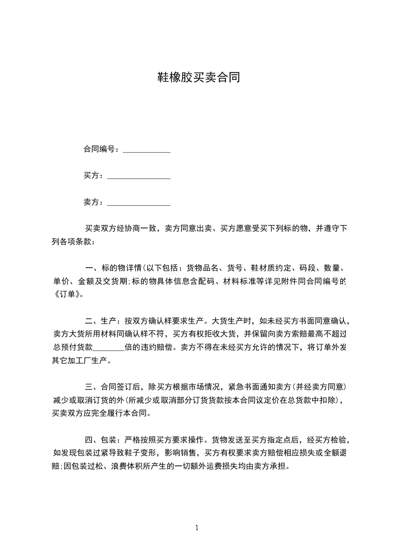 八、验收标准:买方按确认样及相关标准和要求验收所有货物。相关标准以国际鞋类贸易正常检验标准为准,如客户对某个批次(或全部批次)大货有另行质量要求或其他要求,买方需在该批次(或指定批次)交货期前________年,期满另续;