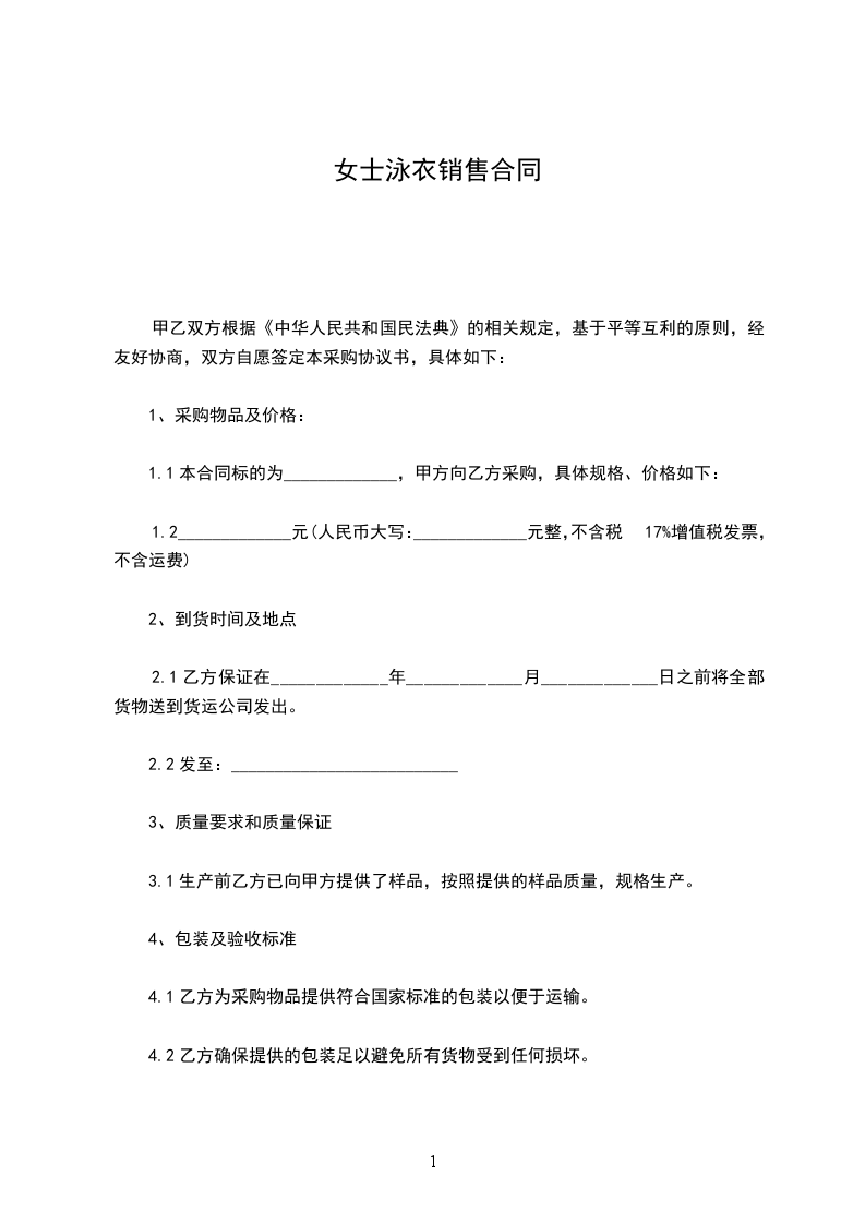八、违约责任:交货期每延迟交货壹天,每日按合同总价的___%计算违约金,由供货方支付购货方。如因数量质量等问题因供方原因造成客户拒收货物退货索赔或扣款等,由供方承担一切责任。