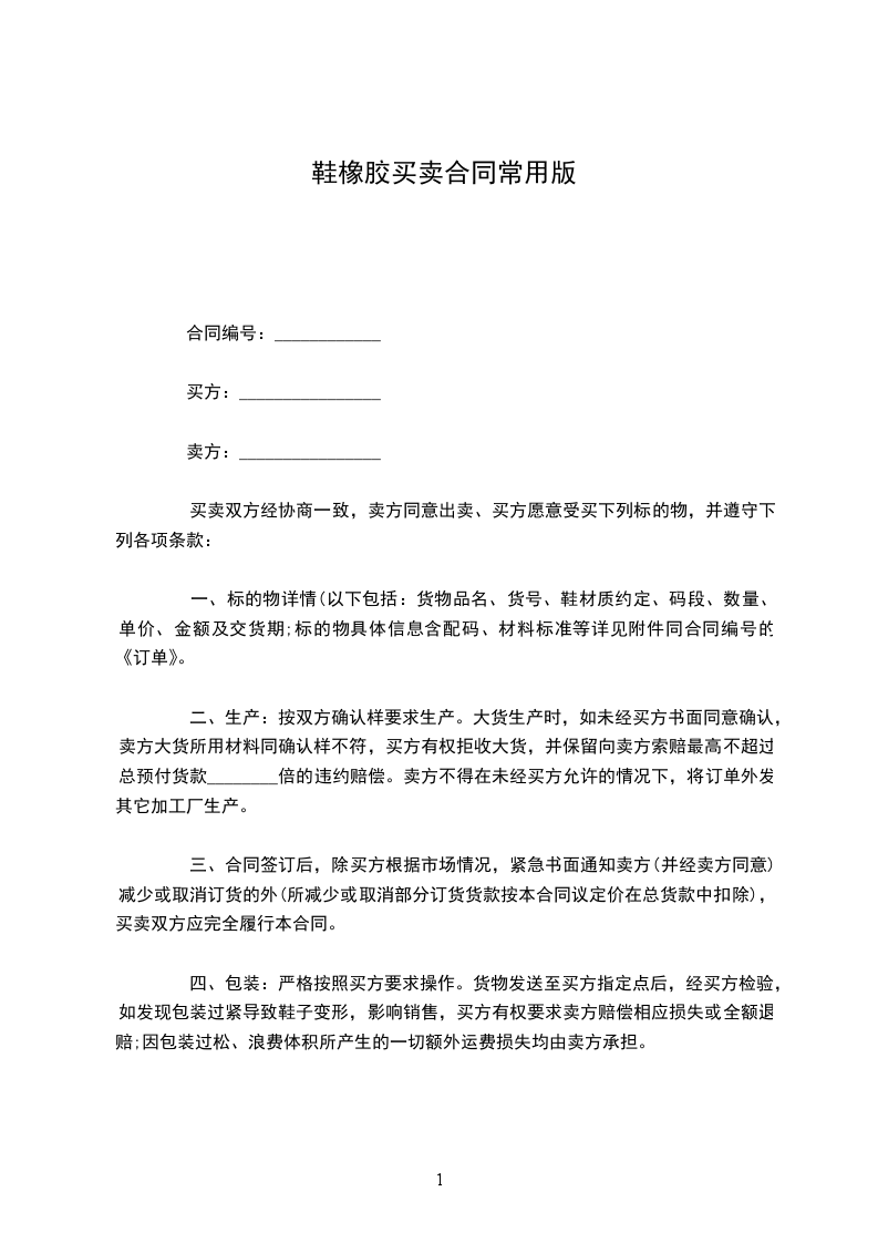 八、验收标准:买方按确认样及相关标准和要求验收所有货物。相关标准以国际鞋类贸易正常检验标准为准,如客户对某个批次(或全部批次)大货有另行质量要求或其他要求,买方需在该批次(或指定批次)交货期前________年,期满另续;